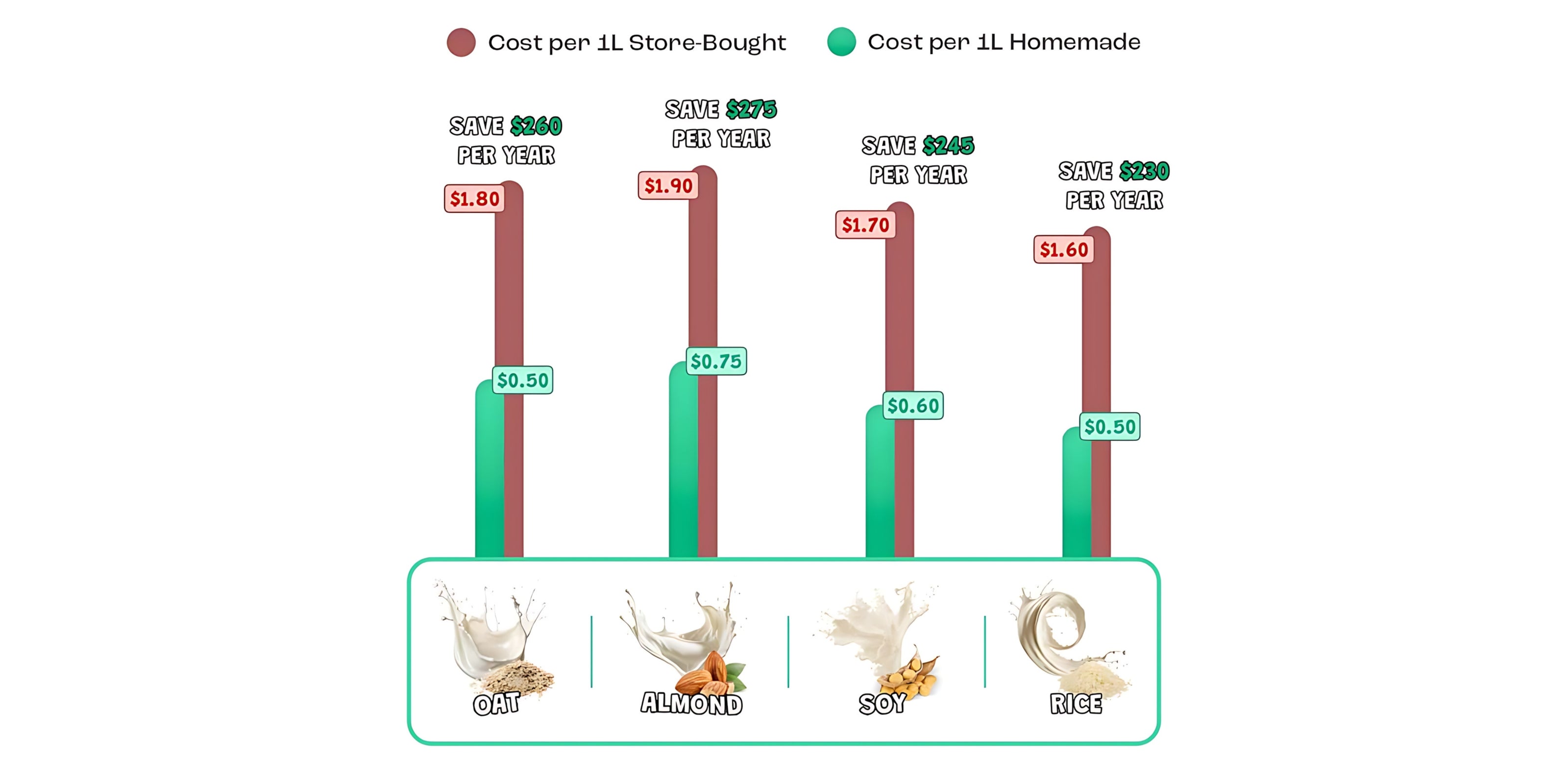 Perfect for both individuals and families, whether you love almond, oat, soy, or other veggieย options, you'll have fresh, customized milk at home every day!